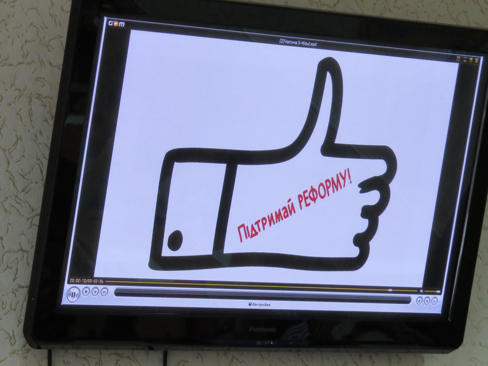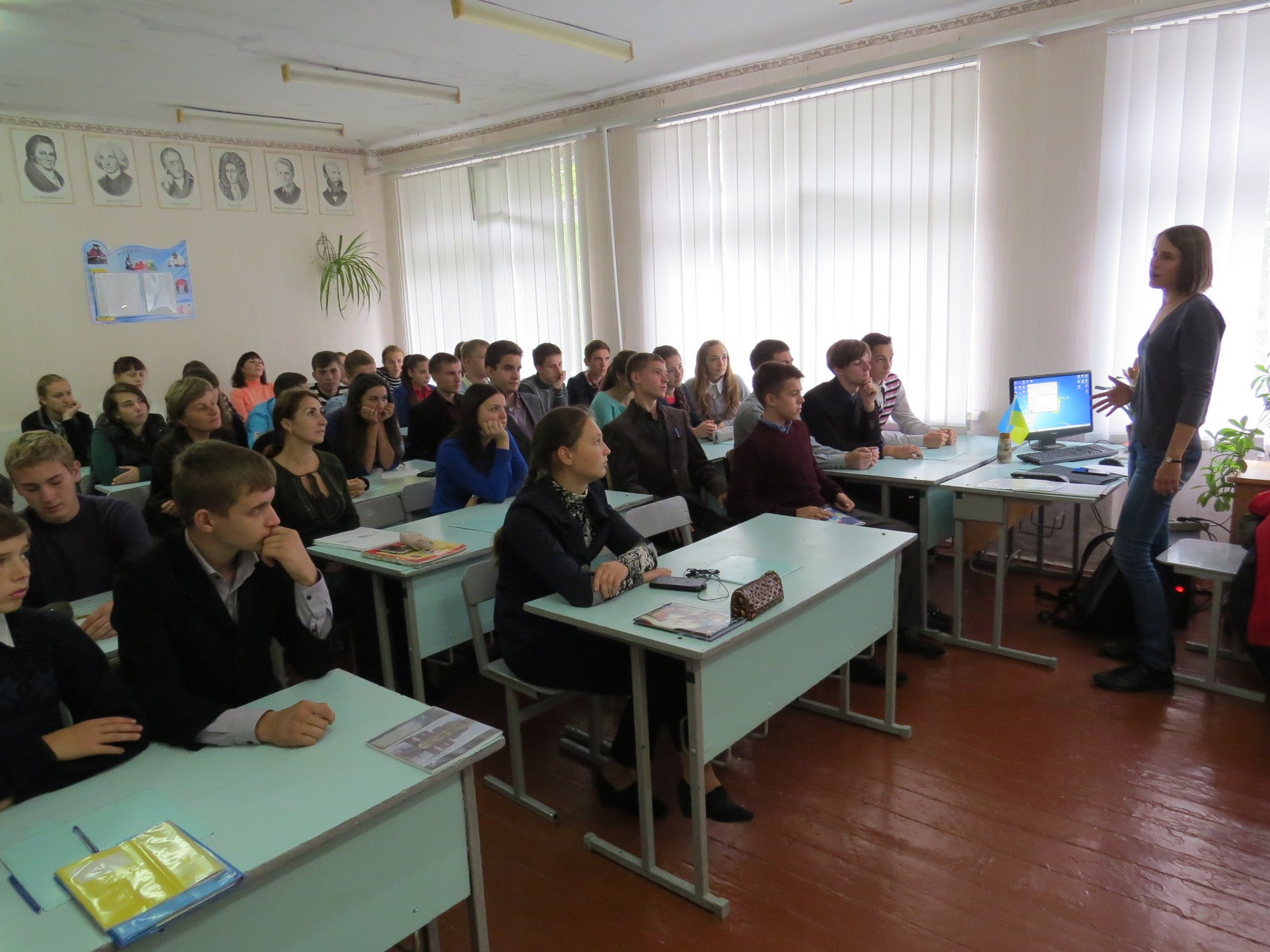 Молодіжні спікери-студенти розповідають учням 9-11 класів про те, чому важлива реформа з децентралізації, в тому числі для молоді, та показують мотивуючі відеоролики.