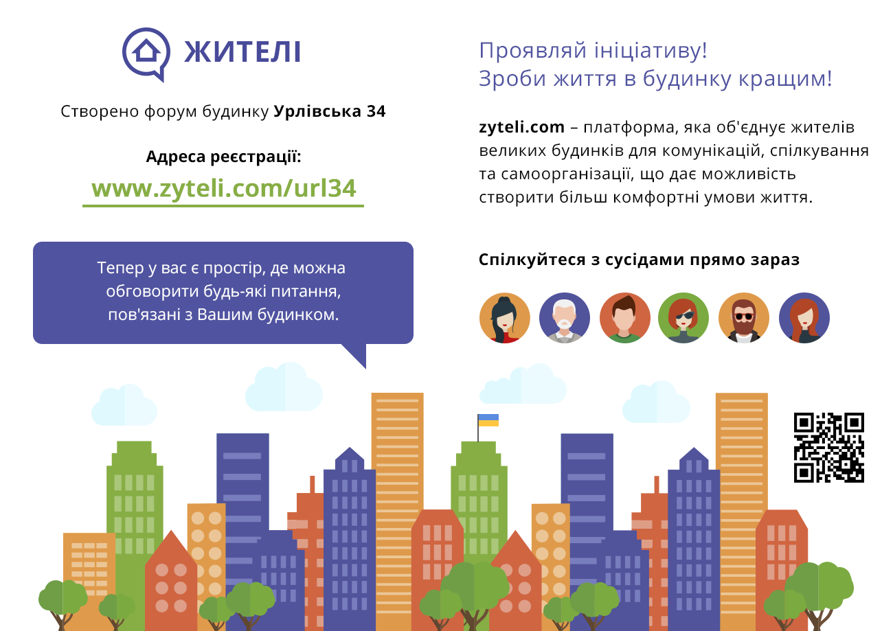 Деякі речі в житті повинні бути простими і доступними, і спілкування з сусідами – одне з них. З Жителями Ви завжди будете на відстані одного кліка від Ваших сусідів. Так що можете сміливо попрощатися з незручним мовчанням у ліфті і почати вітатися з сусідами вже сьогодні!