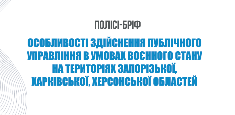 У цьому полісі-бріфі стисло описано особливості публічного управління у Запорізькій, Харківській, Херсонській областях, починаючи з початку повномасштабного вторгнення та введення правового режиму воєнного стану, а також подано рекомендації щодо його вдосконалення.